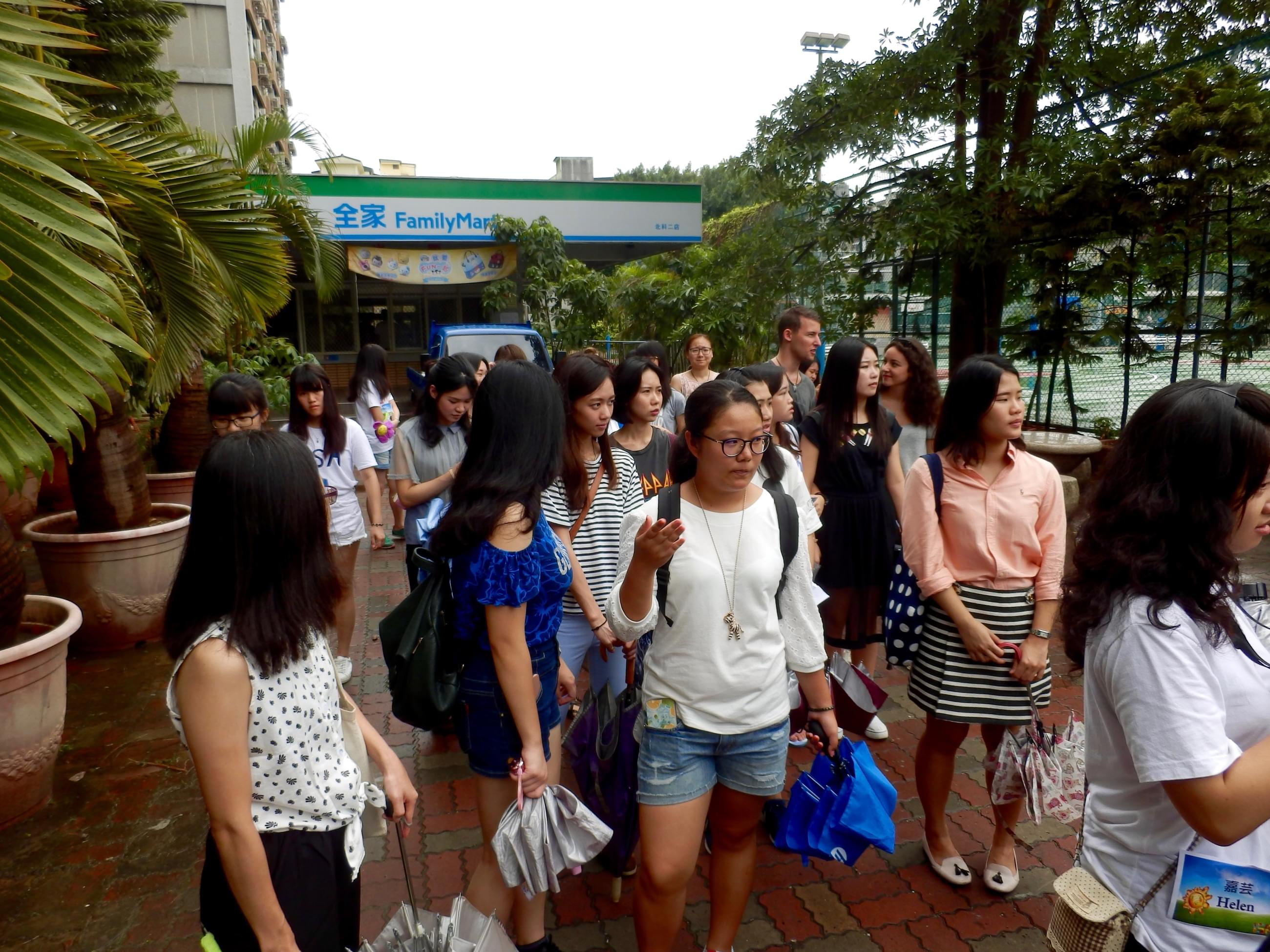 Během hodiny a půl dlouhé procházky jsme se od něj a Annie dozvěděli, co se v jaké budově nachází, kde jsou menzy, obchody či sportovní hřiště. Vše samozřejmě za deště, jinak by to přeci nebyla Taipei, jak má být.